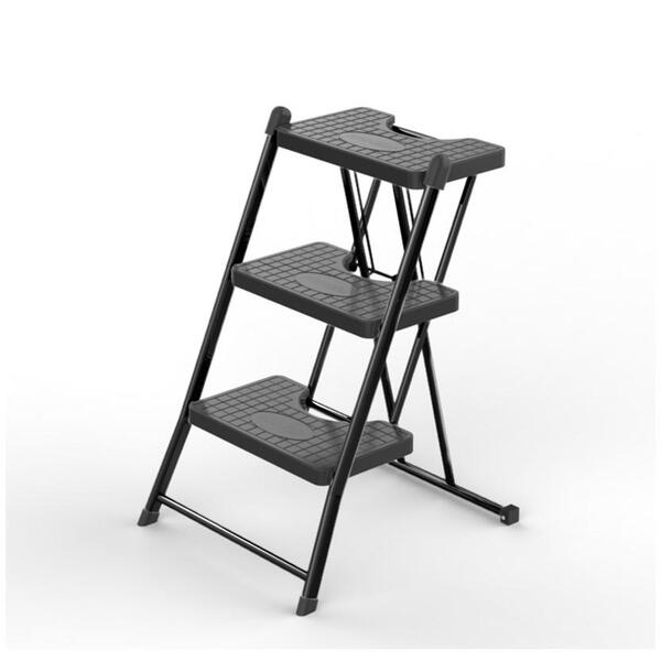 Escada 3 Degraus Dobrável Resistente Aço Anodilar Preta