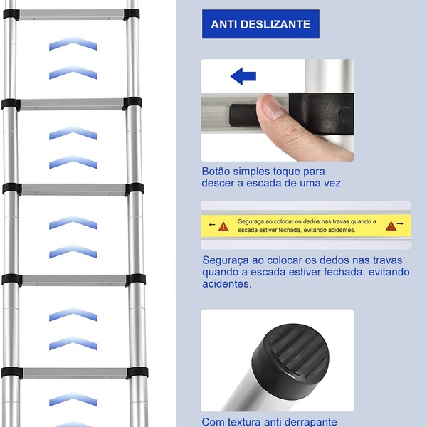 Escada Alumínio Telescópica 3.8 M 13 Degraus – Multifuncional