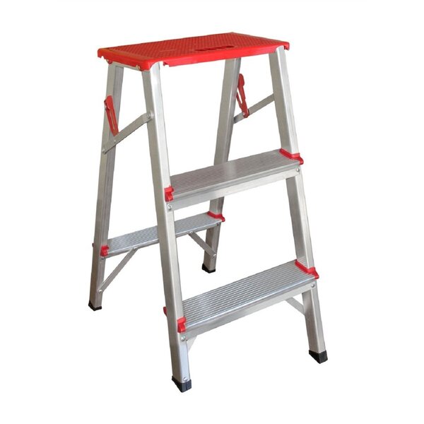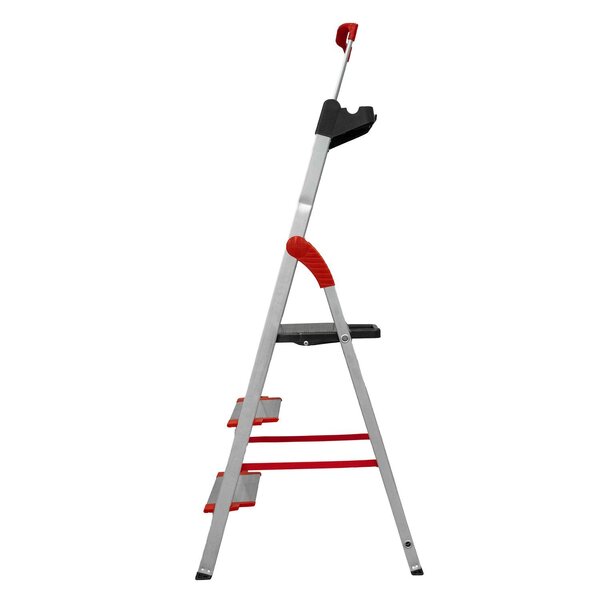 Escada Confort Dobravel 3 Degraus Em Aluminio Com Suporte Multiuso Alumasa