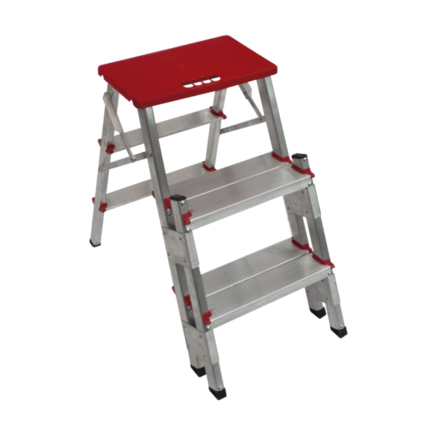 Escada De Alumínio Bilateral 3 Degraus Duplos Apolo Art Factory