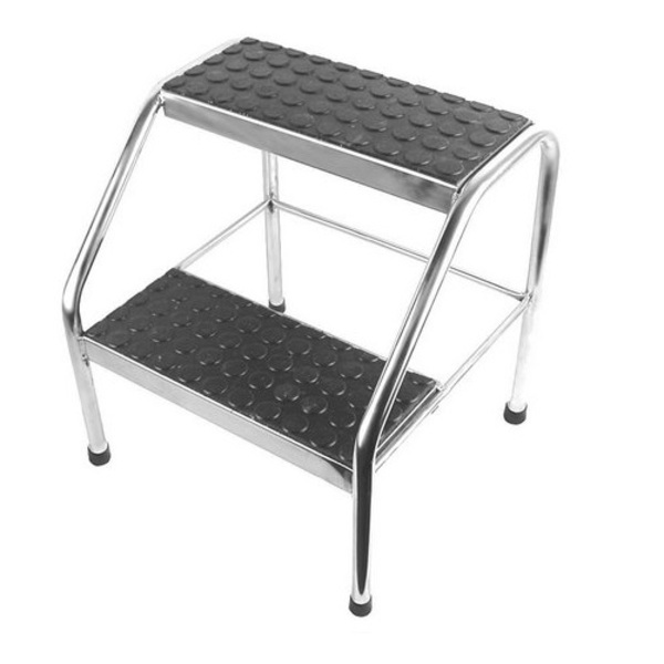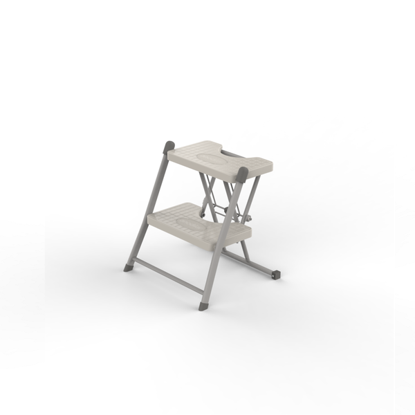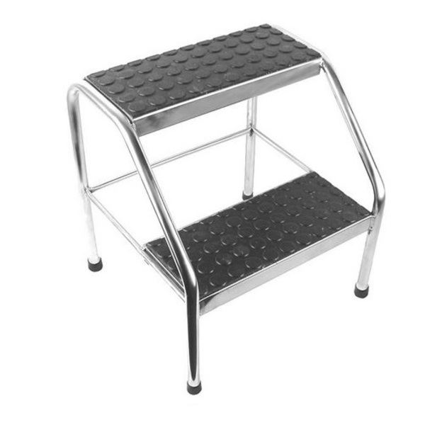 Escada Dobrável Resistente 2 Degraus Doméstica Anodilar Aço Cinza