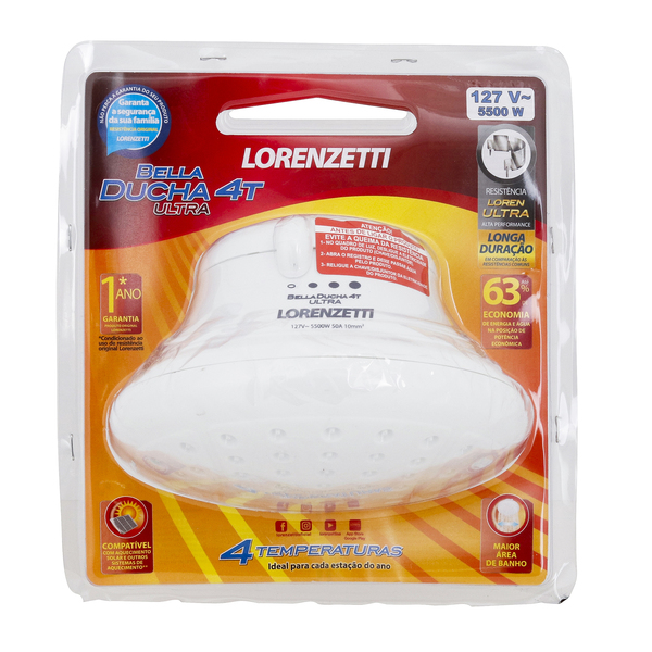 Chuveiro Elétrico Multitemperatura 127V (110V) 5500w Branco Redondo Bella Ducha Lorenzetti