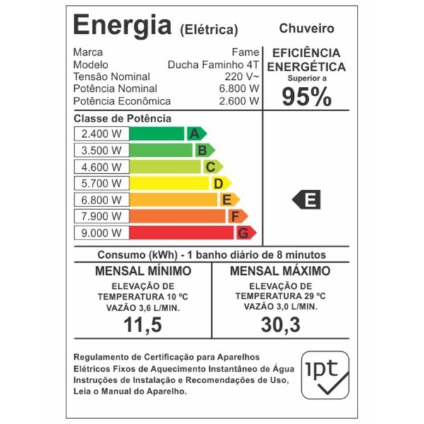 Ducha Faminho 4 Temperaturas Branco 220 Volts 6800 Watts – 3859 – FAME A Nova Ducha FAMINHO 4T foi desenvolvida com tecnologia de ponta para atender às mais altas exigências do mercado. Sua tecnologia construtiva e seu design diferenciado traduz o que é DNA FAME, pioneirismo na fabricação de produtos de qualidade nesse segmento. 4 Temperaturas Maior volume de água na categoria. Resistência com exclusivo sistema de encaixe Acompanha Chuveirinho Manual Quick de rápido acionamento e Suporte. Seletor de temperaturas com exclusiva isolação: Maior segurança