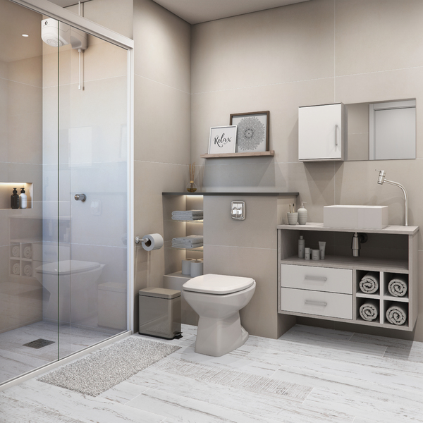 Kit de Vaso Sanitário Convencional Thema, da Incepa Durabilidade e beleza para o seu banheiro, com a praticidade de uma solução completa. Fechamento suave com resistência e durabilidade Resistente e sólido, o assento de polipropileno não se quebra com facilidade, além de possuir fechamento suave e ser altamente resistente a umidade, contribuindo para sua maior vida útil. Além disso, é muito fácil de limpar, se tornando a escolha perfeita para quem busca qualidade e praticidade em um único produto. Fácil Limpeza com laterais lisas, sem sifão aparente A bacia Thema possui laterais carenadas, ou seja, não evidencia o desenho do sifão na estrutura, opção que tem conquistado cada vez mais pessoas que buscam por um banheiro mais elegante e moderno. Com ela, você não precisa se preocupar com a acumulação de sujeira nas superfície da louça, o que garante um banheiro sempre higienizado e ainda contribui para um visual clean e elegante. Evite o risco de danificar seu produto: contrate o Leroy Merlin Instala! Além de todas as vantagens que este produto já oferece, é possível garantir o melhor desempenho do seu vaso sanitário por ainda mais tempo com uma instalação adequada, feita por profissionais realmente qualificados. Ao contratar o Leroy Merlin Instala junto com o seu Vaso Sanitário, você tem mais de 2.200 profissionais certificados e validados à sua disposição, ganha mais pontos no Programa de Fidelidade Leroy Merlin com Você e pode fazer o parcelamento do serviço na mesma compra. Mas a melhor parte é que você ainda tem 1 ano de garantia para cobrir qualquer problema da instalação, tudo com a segurança e a qualidade que só a Leroy Merlin oferece. É muito mais prático e confiável, não é mesmo? Então faça como mais de 570.000 clientes e contrate a instalação junto com o seu Vaso Sanitário agora mesmo. E aí, gostou do Kit de Vaso Sanitário Convencional Thema, da Incepa? Compre aqui em nosso site para receber no conforto de sua casa, ou visite uma de nossas lojas