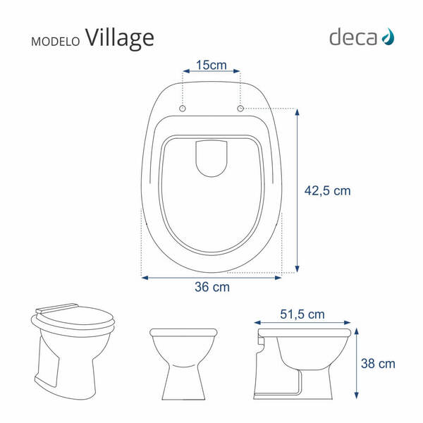 Assento Sanitário Fechamento Lento Village Branco Para Vaso Deca